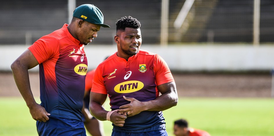 Marvin Orie (lock) and André Esterhuizen (centre) slotted in seamlessly with their Bok colleagues on the training pitch after the pair linked up with their national team mates late on Monday evening (NZ time).