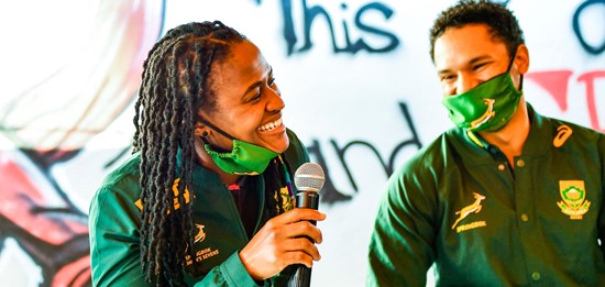 The trio of Springbok RWC winners – who were accompanied by Blitzbok and Imbokodo captains, Siviwe Soyizwapi and Zintle Mpupha, and representatives of the charity organisation Gift of the Givers – also laid down a challenge to schools across the country to get involved with the campaign.