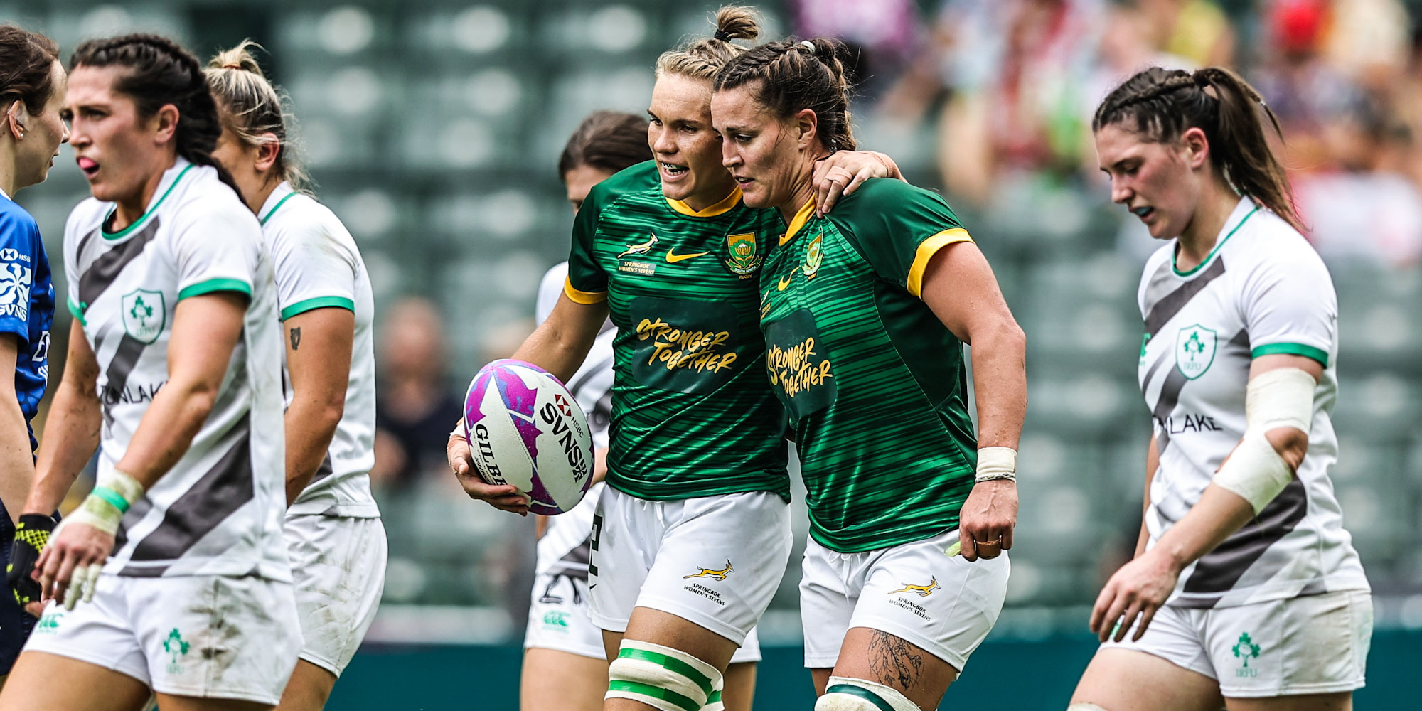 The Bok Women started the tournament on defence as Ireland managed to keep possession on attack for a number of phases as they scored twice in the opening five minutes. Stacey Flood rounded a tiring South African defence and Amee Leigh Murphy Crowe scored from a kick ahead, using her pace to dot down.