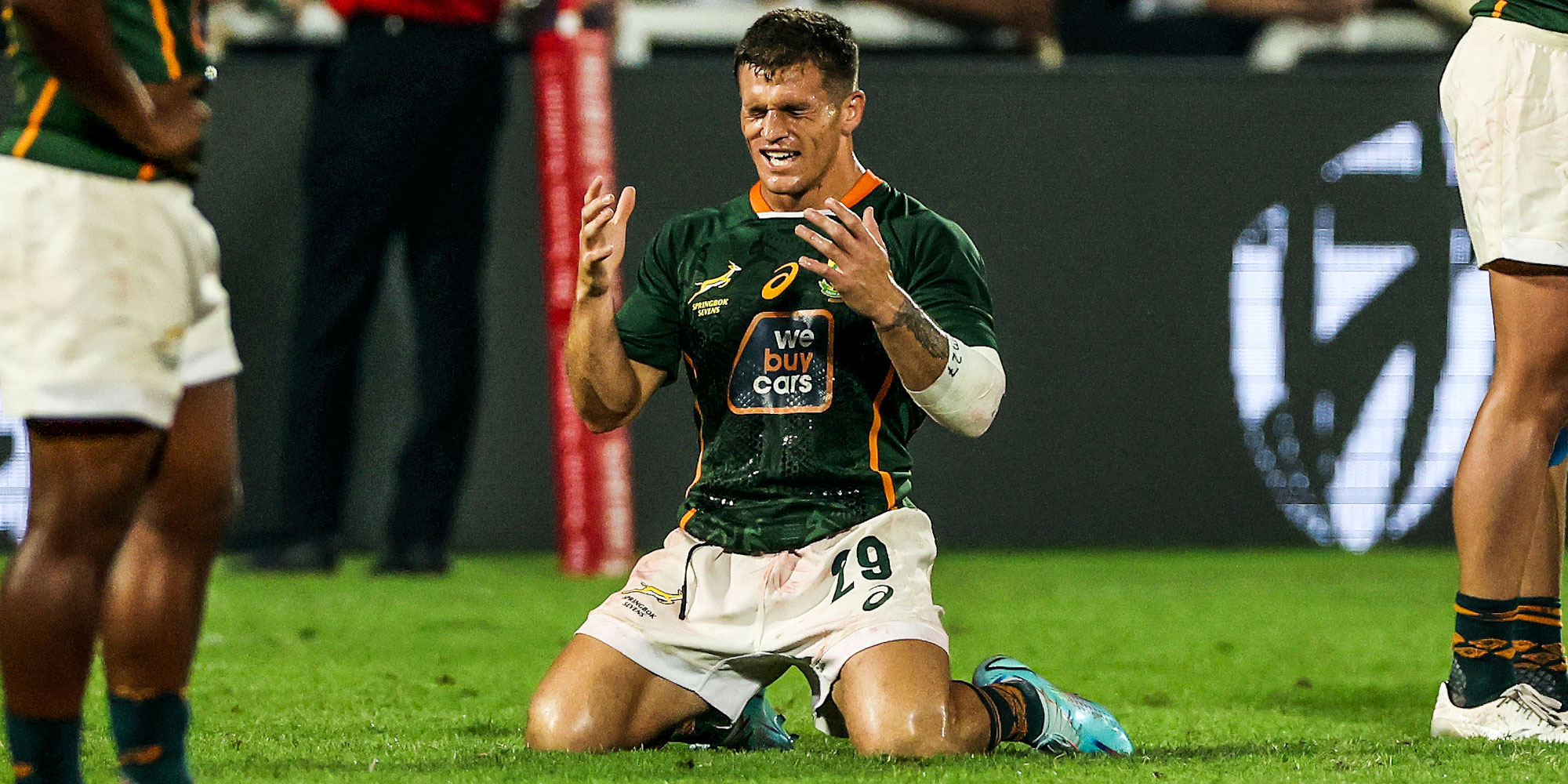 The Emirates Dubai Sevens Trophy fitted nicely in Ricardo Duarttee's arms as he walked around the Springbok Sevens changeroom at the completion of the second round of the HSBC World Rugby Sevens Series. He was smiling, crying and shaking his head, taking in a remarkable debut for the Blitzboks.